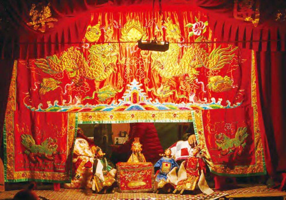 戏班演出时会用竹竿、木板临时搭建舞台,操纵木偶的师傅席地而坐或者站立,然后从携带的道具“四箱二囊”中布置表演,即2箱木偶,1箱乐器,1箱布景,2个竹囊,装大鼓、日遮、油布、搭台用具等标配。